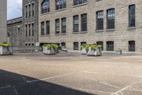 This image showcases the classic architecture of a large building in Toronto, Canada. The building's facade is adorned with stone flower containers, filled with vibrant flowers. The scene captures the essence of city life, with bustling streets and urban design. The sidewalk features cobblestone and asphalt surfaces, leading to the entrance of the building. Nearby, there is an open courtyard, providing a public space for relaxation and enjoyment. This photo represents the unique blend of classic architecture and modern urban living in Toronto.