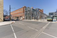 This is an image of a modern condominium building in Toronto, Canada. The clear sky above contrasts with the sleek and stylish design of the building. The streets are lined with trees and street lights, creating a vibrant urban scene. The road surface is smooth asphalt, leading to the entryway of the building and the surrounding neighborhood. The image captures the essence of city life in Toronto, with its well-designed urban infrastructure and bustling streets. It represents a typical day in this dynamic and vibrant city.