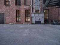 This image captures the urban design and architecture of Berlin, Germany. The brownstone brick building stands tall against the city skyline, with a courtyard and bicycle racks along the side. The empty parking lot adds an open space element to the scene. The classic architecture and brickwork reflect the traditional style of the city. This photo showcases the vibrant city life and the artistic atmosphere of Berlin's art district. It represents a typical day in Europe's urban landscape, with the straight road leading to the warehouse and the open plaza in the distance.