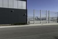 This image showcases the modern architecture and urban design in Toronto, Canada. The residential area is characterized by low-rise buildings constructed with composite materials and concrete facades. The road surface, made of asphalt, stretches through the suburban neighborhood lined with fences and shadow-casting trees. In the clear sky, the hard shadows of the warehouses can be seen. This photo captures the essence of urban living in Toronto, highlighting the mix of residential and commercial buildings. The tints and shades offer a unique perspective of the city's urban landscape.