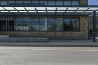 This photo captures a view from the corner of a modern office building in the business district of Toronto, Canada. The urban landscape showcases the architecture and urban design of the city. The building features glass windows, providing a glimpse into the entrance. The road surface is made of asphalt, surrounded by stone and brick structures. The grey tones of the composite materials create a contemporary and sleek look. This image represents the bustling and sophisticated atmosphere of Toronto's business district.