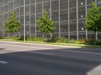 This stock photo captures a vibrant urban landscape in Germany. The image showcases a modern architecture building surrounded by lush vegetation and trees. The asphalt road surface lined by buildings and residential areas adds to the charm of this European city. The city life can be felt in every corner, with people bustling about during the day. The hard shadows cast by the sun create a captivating play of light and shadow. The urban design of the city is evident in the well-planned thoroughfares and parking decks. A perfect depiction of contemporary urban life in Germany.