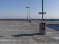 An empty parking lot in Los Angeles, California, with modern architecture and clear signage. Vehicles are parked nearby at the airport. The concrete street, asphalt road, and urban landscape create a composite of the city's modernity.