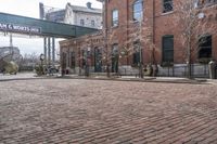 This image captures the essence of a classic Toronto neighborhood. The red brick road and building provide a stunning backdrop, while the gate adds a touch of charm. The street sign labeled 'Adams and Worth' adds a sense of location. The urban setting is made complete by the presence of trees lining the road surface, creating a welcoming atmosphere. The neighborhood is home to various shops, cafes, and restaurants, making it an ideal spot for tourists and locals alike. It's the perfect place to explore and enjoy the vibrant art district and dine out at one of the many eateries.