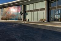 Urban Office Building with Glass Walls on Clear Sky Day
