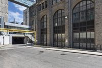 A modern office building in the bustling business district of Toronto, Canada. The yellow facade stands out against the urban landscape. A busy entry point with a loading dock and driveway.