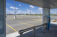 This stock photo features an urban parking area in Toronto, Canada. The image showcases a parking meter on either side of the parking area, along with a phone attached to one of the meters. The parking lot is located next to a road with asphalt surface, surrounded by residential buildings and open spaces. It is a sunny day with clear skies and white clouds. The photo captures the infrastructure and real estate elements of the city, including the line markings on the floor, the glass windows and roofs of nearby buildings, and the public space surrounding the parking area. In the distance, there is a highway, indicating easy access to transportation. The image represents a typical urban scene, and it can be used to illustrate concepts such as urban planning, transportation, architecture, and city living.