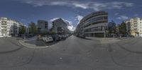 A road through Berlin's residential area showcases the blend of modern architecture and urban design. Cloudy day highlights the city life within Germany's capital, a core of Europe's vibrant cityscape.