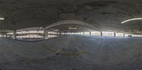 An urban skateboard park under construction, featuring exposed concrete walls and beams. The modern architecture and open space provide an ideal setting for city life. Clear sky and sunny weather add to the vibrant atmosphere.