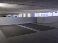 Urban skateboarding in Berlin's parking garage, with its modern architecture and artificial lighting creating a unique atmosphere. The empty space provides a perfect setting for skateboarding tricks and stunts.