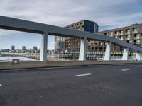 A modern cityscape in Holland, Netherlands. The picture captures the urban design and architecture of the city, with its impressive office buildings and bridges. The clear sky and bustling city life create a vibrant atmosphere.