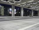 Skateboarder showcasing skills in a monochromatic urban space. Concrete and arches create a unique architectural design. Overhead perspective offers a captivating view of tricks being performed.