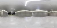 A striking upside-down fisheye photograph of an underground subway station and tracks. Modern architecture and composite material line the walls, while artificial light illuminates the space. A unique perspective of urban transportation in HafenCity.