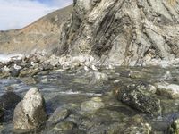 USA Big Sur Cliff with Water, Rocks, and Pebbles