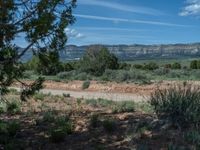 A scenic rural landscape in Utah, with an off-road dirt track leading to a campground. Gravel and sand streets wind through the foreground, while clouds fill the sky on a sunny day.
