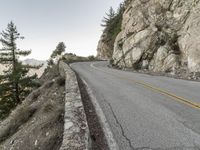 This captivating image captures the beauty of a winter morning in California, USA. The clear sky paints a vivid backdrop against the rugged mountain landscape. A winding road, lined with trees, cuts through the rocky terrain. The asphalt road surface and Armco barrier along the roadside provide necessary infrastructure for safe travel. The rocky walls stand tall and strong, adding a touch of grandeur to the scene. With the winter sun shining down, this serene and picturesque nature scene is a perfect representation of California's stunning landscapes.