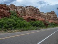 A scenic road in Utah surrounded by breathtaking landscapes. The clear blue sky and fluffy clouds add to the beauty of the natural environment. An idyllic day in the USA.