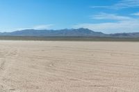 a large sand field with no people in it, and mountain range in the background