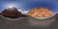 A road trip through the stunning mountain landscape of Colorado, USA. The straight road curves through the elevated desert mountains, offering a panoramic view of the wilderness. Experience the geology and nature of this national park while enjoying the local cuisine.