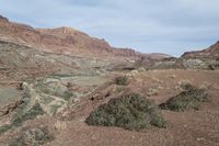 the valley looks very rocky and sparse in this desert area with sparse trees growing inside