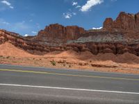 Scenic view of Highway 12 in Capitol Reef, Utah. The asphalt road winds through the breathtaking landscape, with majestic cliffs and open skies. A perfect day to explore the natural beauty of the USA.