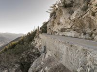 This image captures the beauty of the California landscape at dawn. The road, made of smooth asphalt, winds through the mountains, providing breathtaking views of nature and mountain landforms. The rocky outcrops and cliffs showcase the geology of the area, with visible faults and formations in the bedrock. The clear sky above adds to the rugged and picturesque scenery. Armco barriers line the road, ensuring safety while driving through this stunning landscape. This photo represents a typical day in California, highlighting the natural beauty and geological features of the area.