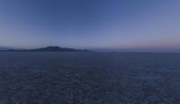 a wide angle photo of an empty desert plain at twilight or sunrise with the sun in the distance