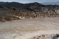 This aerial view showcases the rugged and elevated landscapes of Death Valley in California, USA. The clear sky highlights the vast open spaces, where mountain landforms and rocky outcrops dominate the desert terrain. The dirt roads and off-road tracks provide access to this remote wilderness, allowing visitors to explore the unique geology of the valley. With its gravel and badlands formations, Death Valley is a remarkable sight. This photo captures the beauty and serenity of nature in this high desert region. Get a glimpse of the untouched surface and stunning views that Death Valley has to offer.