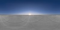 an empty skating area with the sun in the sky behind it and multiple strings in the air
