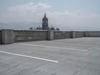 a parking lot and wall are pictured in a photo from the perspective point of view