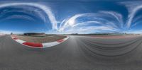 A motorcycle rider gracefully navigates through the curves of an elevated race track in the USA. Clear skies and open space provide the perfect backdrop for this thrilling race. The low position of the sun creates a stunning dawn atmosphere.