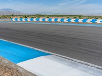 A race track in the USA, with asphalt curving along the landscape. Clear skies provide perfect conditions for a day of intense racing. Adrenaline-pumping action on the road.