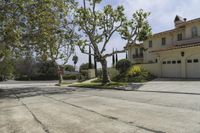 This is an image of a residential area in Los Angeles, California, USA. The architecture of the buildings and houses reflects the urban design of the city. The road, made of asphalt, runs through the neighborhood, providing access to the residential properties. The area is surrounded by beautiful trees and hills, creating a scenic view. The image captures the vibrant atmosphere of the suburban neighborhood, showcasing the real estate and properties in the area. The photo was taken during the day, emphasizing the natural light that illuminates the surroundings. This public space offers a comfortable living environment, with well-maintained curbs, driveways, and road surfaces. The land lots offer ample space for residential purposes, making it an ideal place to call home. This specific neighborhood is located near well-known areas like Beverly Hills and Bel Air.