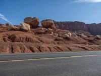 An asphalt road stretching across the picturesque landscape of Utah. Beautiful clouds fill the sky on a sunny day, perfectly complementing the natural beauty of this road in the USA.