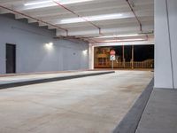 a very large room has some lights and concrete in it, as well as a concrete ramp