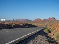 A road in the USA stretching through Monument Valley at dawn. Clear skies offer a breathtaking landscape of the Arizona and Utah border. Asphalt under the early morning light creates a serene atmosphere.