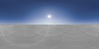 A sunny day in the USA, with the sun shining brightly above an open concrete surface. Clear sky and sunshine illuminate the vast landscape. The lines of sand create a unique texture.