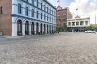 USA Urban City with Cobblestone Streets and Plazas