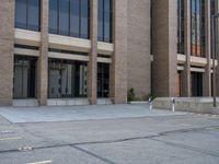 a street with a building near the building in the middle and on the left of which is a parking lot, as shown in this photo