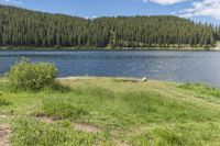 This image captures the beauty of a day in Clinton Reservoir, located in Colorado, USA. The picture showcases the stunning landscape of the mountain range surrounding the reservoir, with lush green grass and vegetation covering the highland. The reservoir is a great recreational spot, offering open space and water resources for visitors to enjoy. The clear blue sky with fluffy clouds reflects the picturesque natural environment. This photo invites you to explore the wilderness and immerse yourself in the peaceful and serene atmosphere of Clinton Reservoir in Colorado.