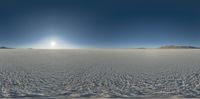 A serene landscape in Utah, at the break of day. Clear sky and open space with the sun visible. The Salt Surface of Salt Lake City glistens in the morning sunshine, embracing the beauty of the desert nature.