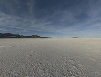This stock photo showcases the beauty of the Utah desert at dawn. The open desert landscape features vast stretches of sand and plains, with the magnificent mountains in the background. The clear blue sky, calm atmosphere, and dry surface create a serene and tranquil natural environment. A salt lake can be seen on the horizon, reflecting the peaceful surroundings. Contrails streak across the sky, adding an emotional element to the scene. This stunning image captures the untouched beauty of Utah's natural landscape.