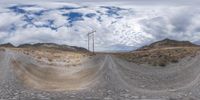 an image looking up at the sky from a hill top with a dirt road that has a stop sign at its corner