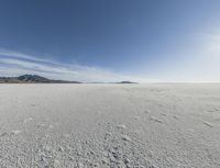 This striking stock photo captures the natural beauty of Utah's desert landscape. The image shows a vast expanse of sandy plains and dry land under a clear blue sky. In the distance, majestic mountains rise, providing a stunning backdrop. A serene Salt Lake can be seen, reflecting the calmness of the surroundings. The horizon stretches beyond, showcasing the vastness of nature. Contrails paint the sky, adding a touch of motion to the stillness. The surface of the salt lake glistens, creating a mesmerizing effect. This emotional image depicts the unique and captivating natural environment of Utah.