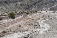 A rugged mountain landscape in Utah, USA, with red rock formations and open spaces. Dirt road winds through canyons with elevated surfaces and bedrock outcrops. Clouds dot the high desert sky.