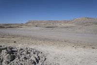 A rugged off-road track in the San Rafael Swell, Utah. The high mountain landforms and red rock landscape create a breathtaking natural environment. Clear skies and elevated terrain add to the beauty of this desert region.