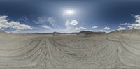 An off-road track in Utah's Factory Butte landscape. The dirt and gravel surface under a clear sky provides a challenging terrain for adventure seekers. A day in the desert with open spaces and stunning nature.