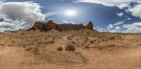 A clear sky frames the majestic landscape of Capitol Reef in Utah, USA. The open space along Highway 12 offers a day of off-road adventure on dirt and gravel surfaces. Nature's beauty unfolds amidst the sand and clouds.