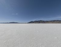 This is a stunning image of the Utah desert landscape. A calm and serene scene is captured, with the clear sky providing a beautiful backdrop to the mountains in the distance. The dry desert is composed of sand and rocks, and in the foreground, we see the surface of a reservoir reflecting the blue tones of the sky. The image evokes a sense of peace and tranquility, showcasing the natural beauty of Utah's desert landscape. It is a perfect representation of the emotional connection we can find in the natural environment.