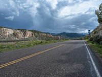 A scenic road winding through the mountains of Utah, with clear skies and picturesque clouds. The asphalt blends seamlessly into the natural landscape, creating a harmonious connection between man-made infrastructure and the surrounding nature.